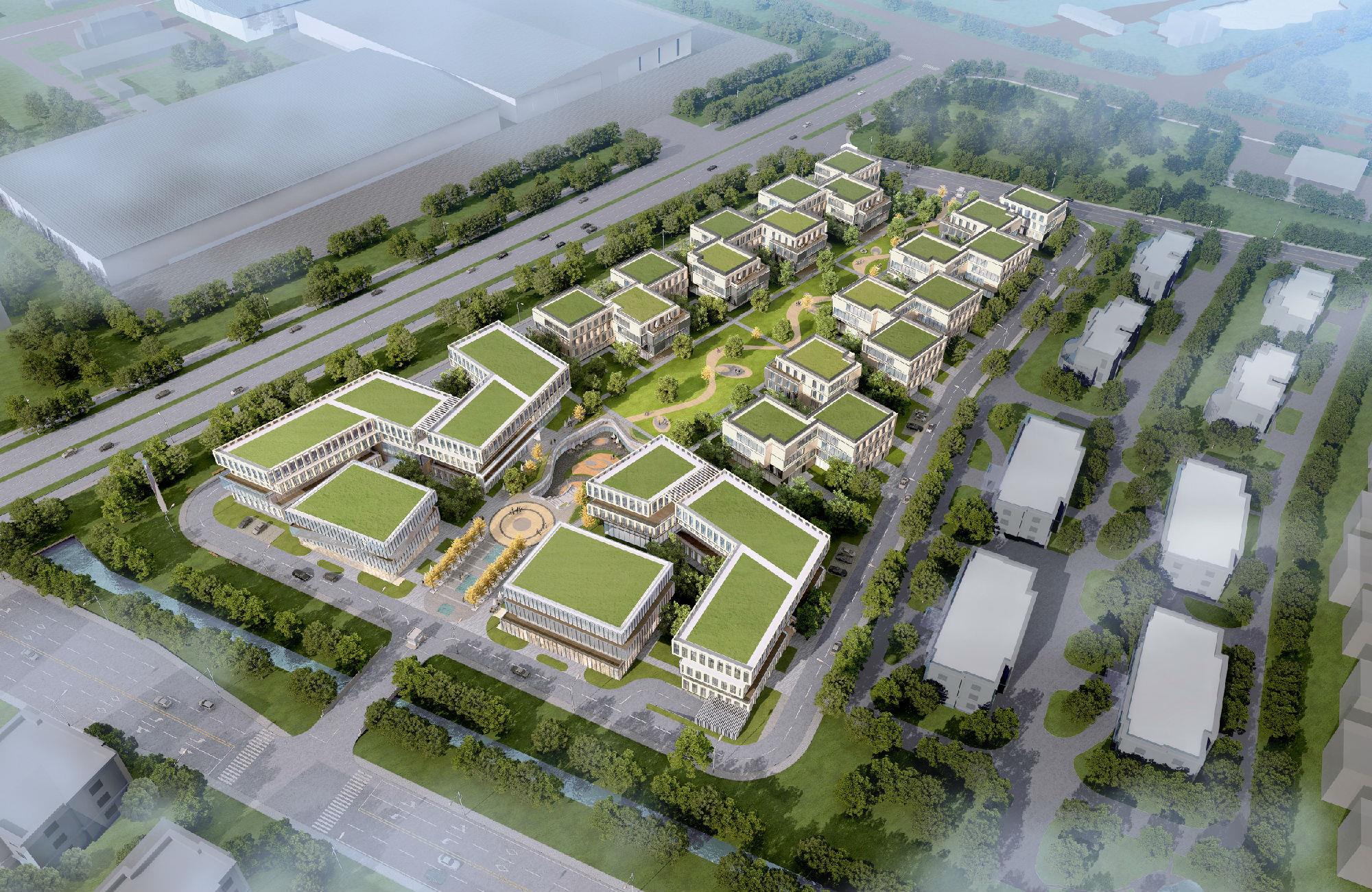 以“医疗大数据科技创新高地”和“智能医疗独角兽总部基地”为目标的上海智能医疗产业园突破低容积率狭长地块局限挑战,打造拥有私享院落、共享绿谷、智能园区、立体生态特点的多元的复合型智慧互动医疗产业园区。